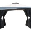 Le gazébo Malta de Sojag dispose d’un toit en polyester conçu pour vous protéger lors des longues journées sous le soleil estival. Il est conçu pour assurer une installation simple tandis que son cadre en aluminium léger avec revêtement en poudre offre robustesse et stabilité. Le Malta est équipé d’un cadre moderne et élégant, d’un dessus en tissu polyester, ainsi que de rideaux en polyester de bon goût et d’une moustiquaire en nylon, permettant à vous et votre famille de bénéficier d’une ventilation adéquate et d’une protection tout au long de l’été.