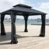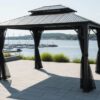 Structure 100% aluminium robuste avec toit en Galvalume compose d’acier et aluminium. Moustiquaire en Textilene incluse.