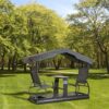 La balançoire de jardin 2 places Eco est le meuble idéal pour profiter du paysage. Elle fait partie des articles de mobilier extérieur les plus polyvalents. Elle peut être utilisée pour lire tranquillement un livre, jouer aux cartes ou regarder les enfants jouer dans le jardin. Elle protège du soleil et sera appréciée de toute la famille pendant de nombreuses années. Remarque : Enlevez l’auvent du toit pour entreposer la balançoire pendant l’hiver.