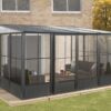 Le solarium mural Korado pourrait être l’ajout parfait à votre espace extérieur. Imaginez votre propre havre de détente où vous êtes protégé de la neige, de la pluie, des moustiques et des rayons UV tout en étant pouvant admirer la beauté de votre environnement. Vous pouvez maintenant profiter de votre cour à l’année. Ce solarium comporte une structure en aluminium, un toit en acier galvanisé, des fenêtres en PVC et des moustiquaires. Il crée également un espace intime qui vous garde à l’abri des éléments. Sa structure durera des années, créant un magnifique point d’intérêt et ajoutant de la valeur à votre propriété.